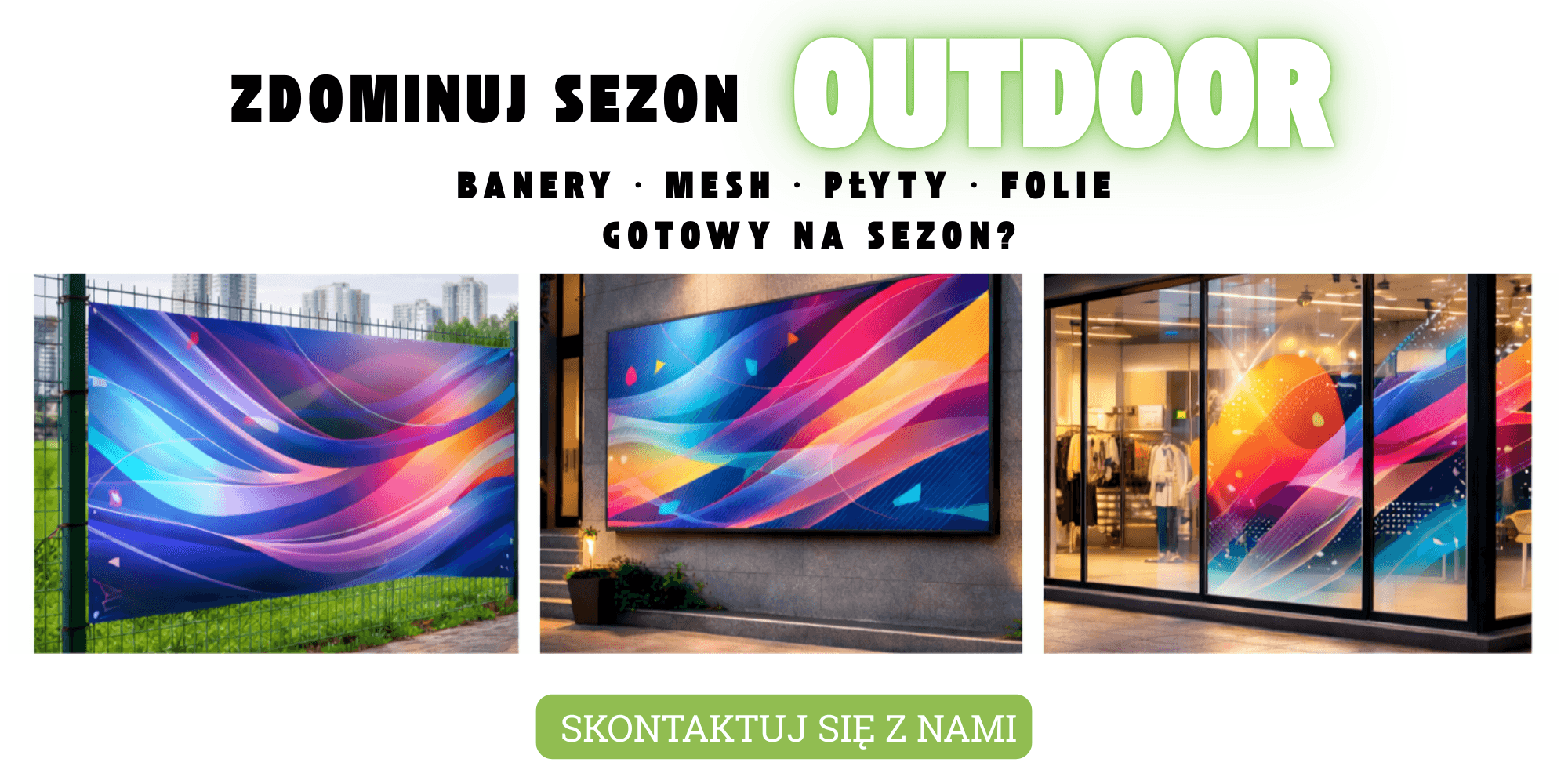 Oferujemy wydruki wielkoformatowe na różnego rodzaju podłożach z szeroką gamą wykończeń i systemów reklamowych., m.in. na: