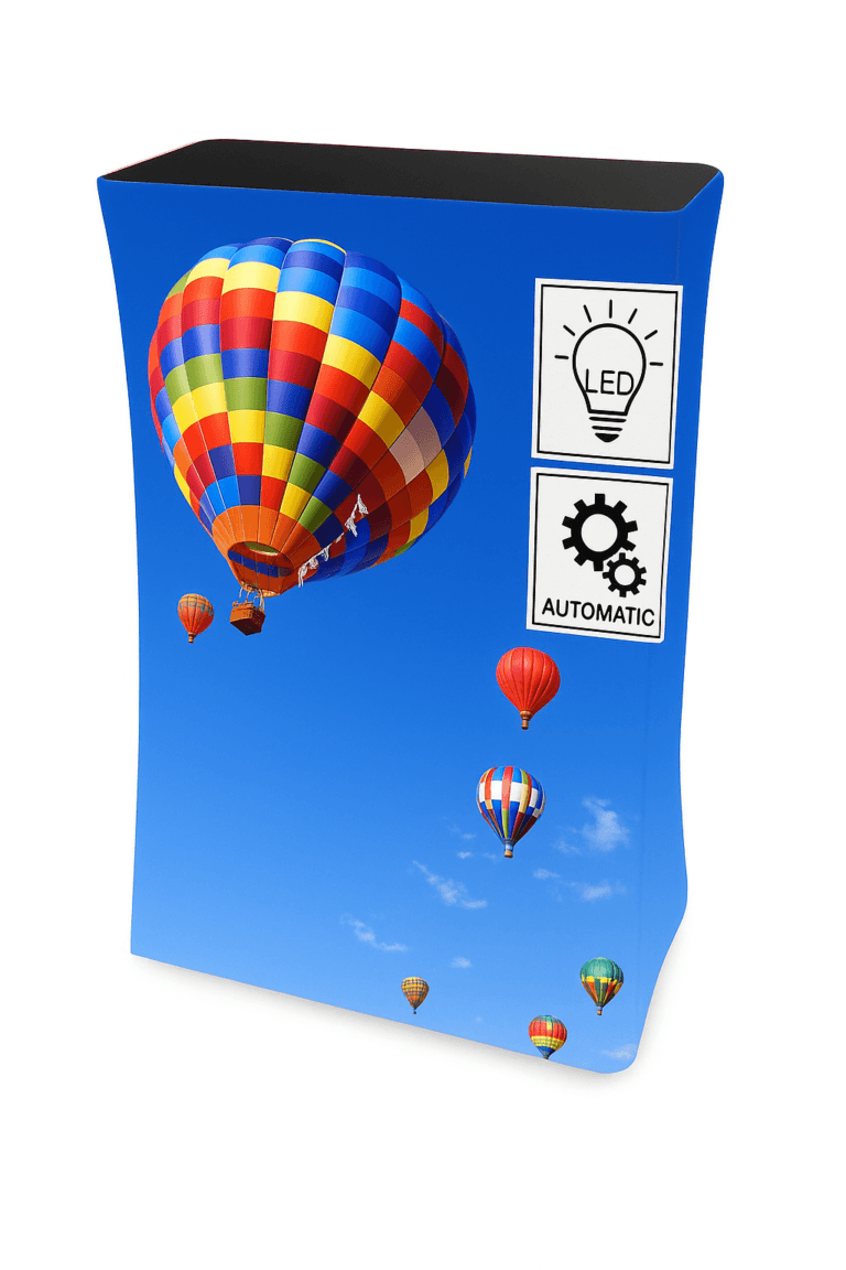 Structure PopUp avec l’impression montée sur un panneau en PVC.