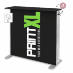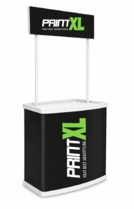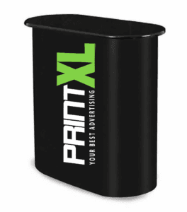 Konstrukcja pop-up z tekstylną grafiką montowaną na rzep.